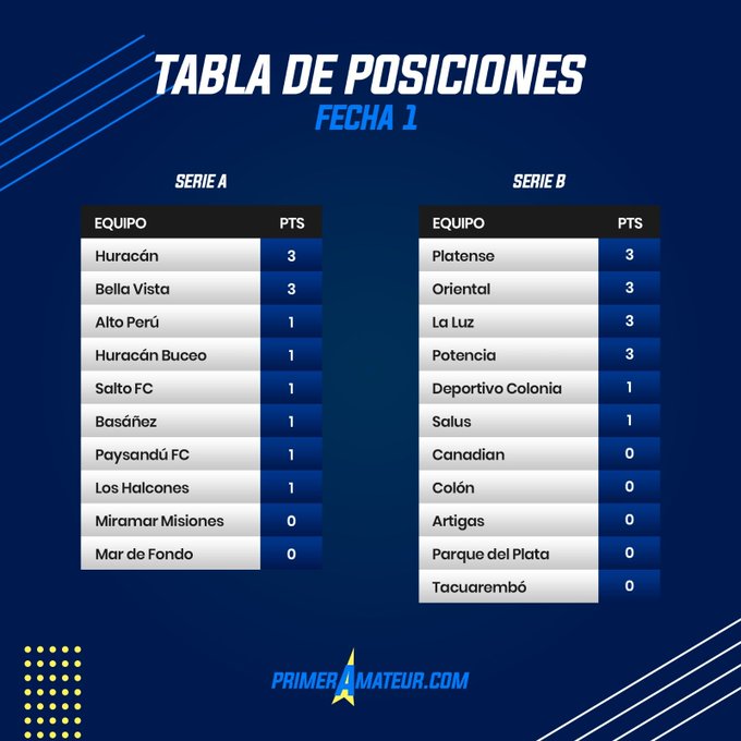 Compartimos todos los detalles de la primer fecha del Torneo Apertura de Primera División Amateur, con tabla de posiciones, goleadores, valla menos vencida, fotos y los datos del a primer fecha.