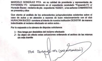 En la jornada de hoy Paysandú F.C. presentó una nota por la cual retira su reclamo de pedidos de puntos frente...